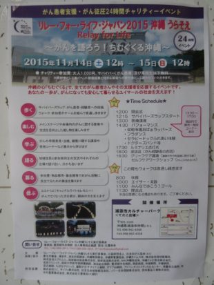 2015年11月14日土曜日12時~15日日曜日12時まで開催です。日本人の2人に1人はがんになるといわれ、県内は毎年6千人が新しくかかっています。自分や大切な家族、友達にとって他人ごとではありません。ひとりで悩み孤独に過ごす患者さんもいます。そんな「がん」のことを地域全体で考えようと・・・