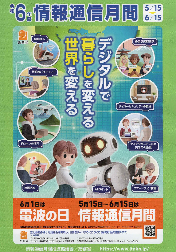 FM21では5月15日から6月15日までの間、情報通信月間の番組を放送します、毎週月曜日11時15分・木曜日11時15分・金曜日の11時00分に、情報通信月間のコーナーを設けて放送します、電波のこと(形態やラジオ等)を知れる機会ですので是非お聞きください。