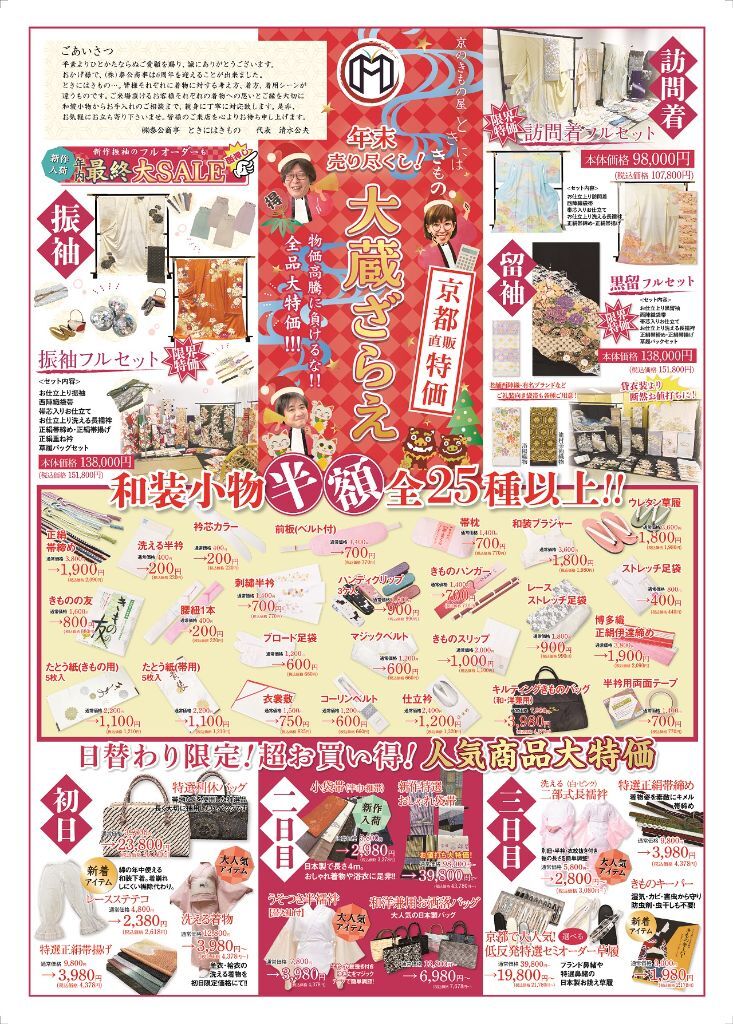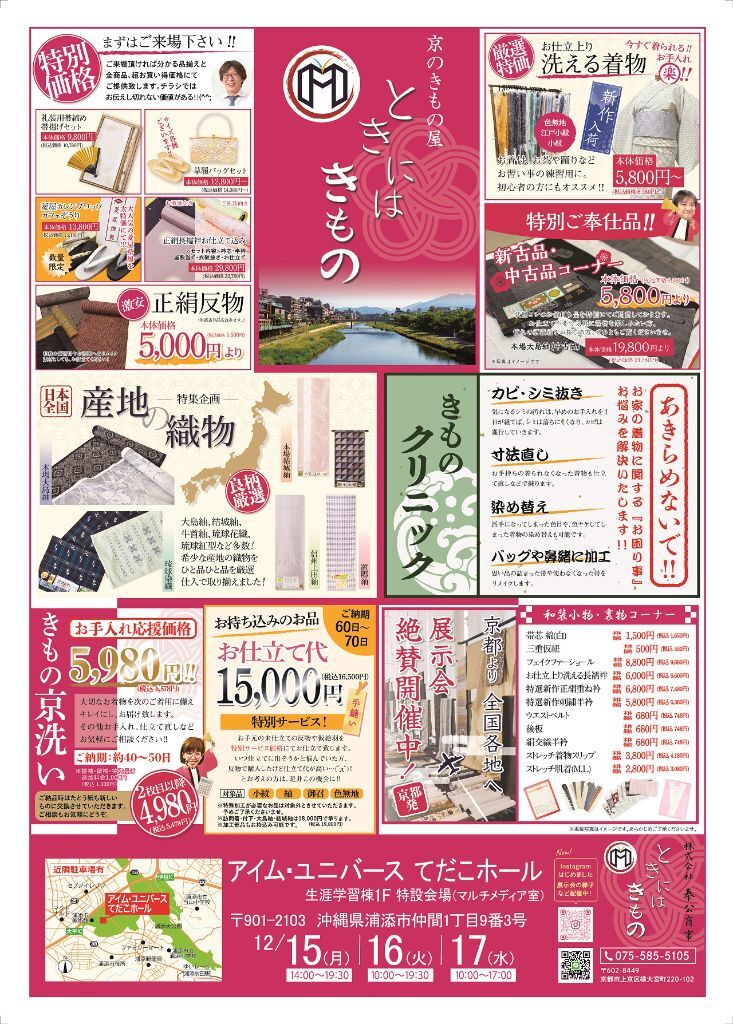本場京都より、毎年恒例の着物・和装小物を直販にて、大蔵ざらえ・年末大売り出しを宜野湾、浦添、那覇にて開催致します。