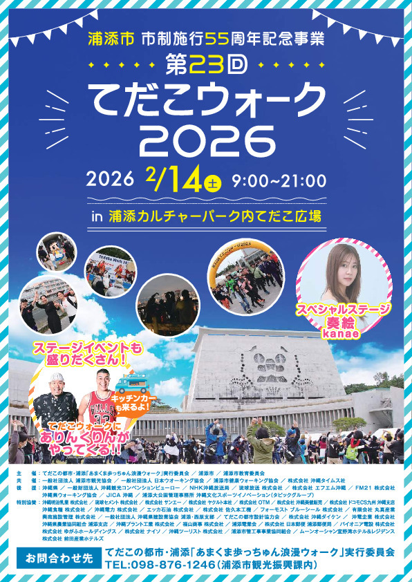 沖縄県最大級のウォーキングイベントとして県内外より多くの方に参加していただいております「てだこウォーク」が令和8年2月14日(土)に開催されます。